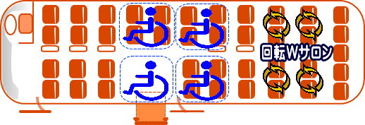 車椅子(電動を含む)に載ったままご利用になれる大型観光バスです。